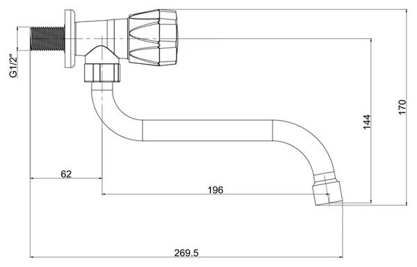 Кран для одной воды, из высокопрочного пластика от стены