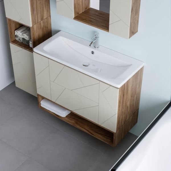 Изделие предназначено для рационального хранения косметики, гигиенических принадлежностей, полотенец и других мелочей, помогая поддерживать порядок и освобождая поверхность тумбы. Полка изготовлена из влагостойкого ЛДСП, устойчивого к деформациям, воздействию пара и брызг, что обеспечивает долговечность даже в условиях повышенной влажности.