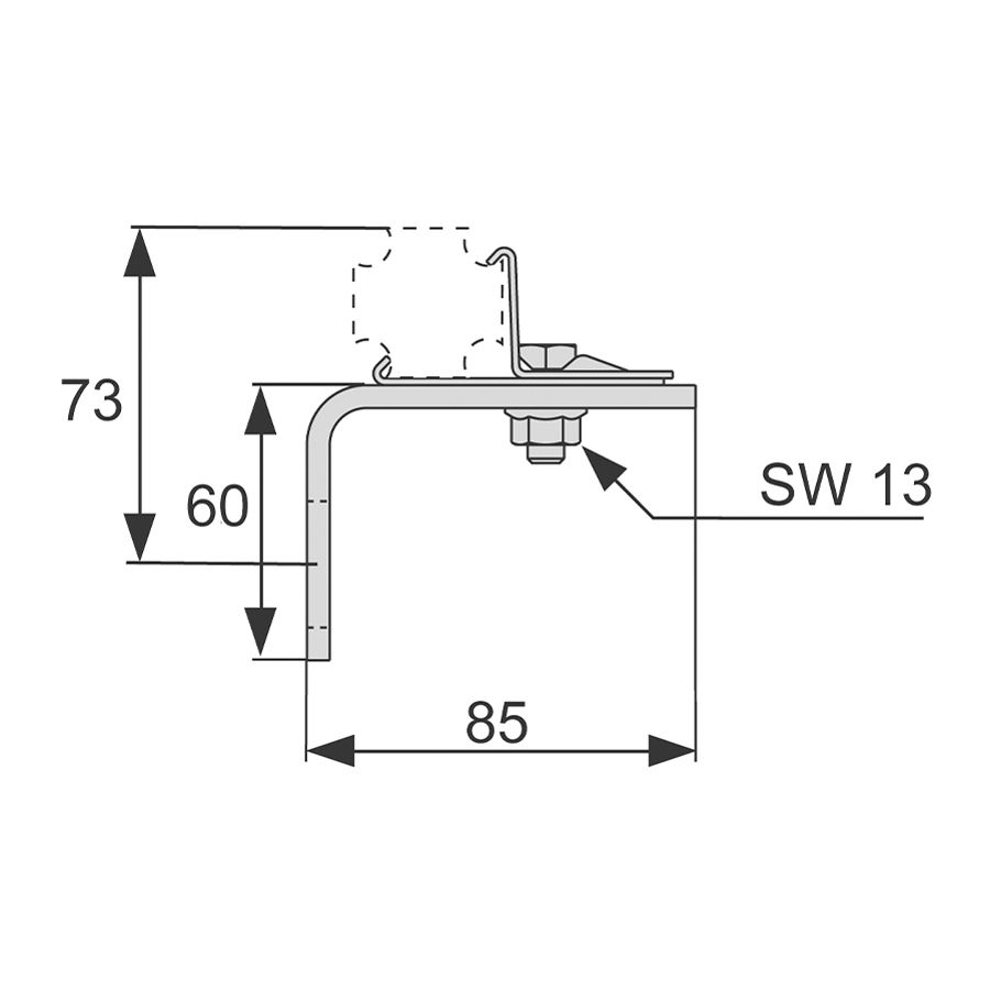 Одинарное крепление для монтажа стального профиля TECEspring к конструкции. Узел в сборе из оцинкованной стали в комплекте с крепежными элементами