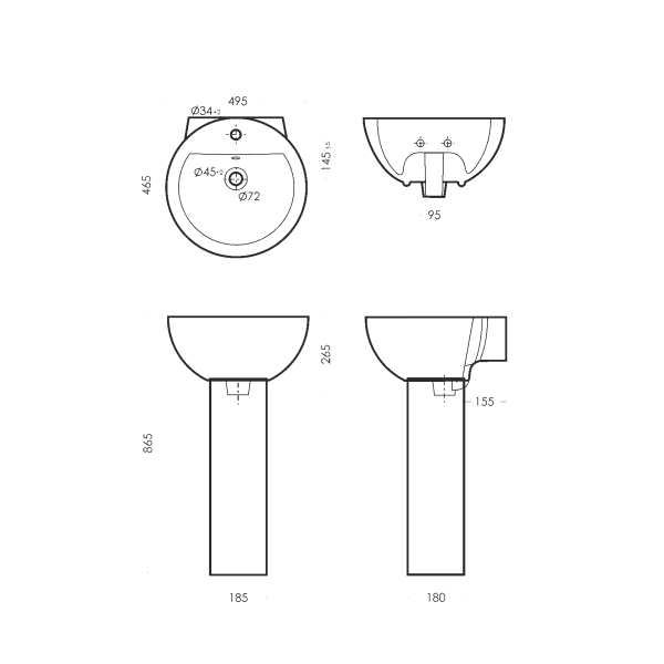 Пьедестал к умывальнику Sanita Luxe 65.5 смРазмеры пьедестала: 185 х 180 х 655