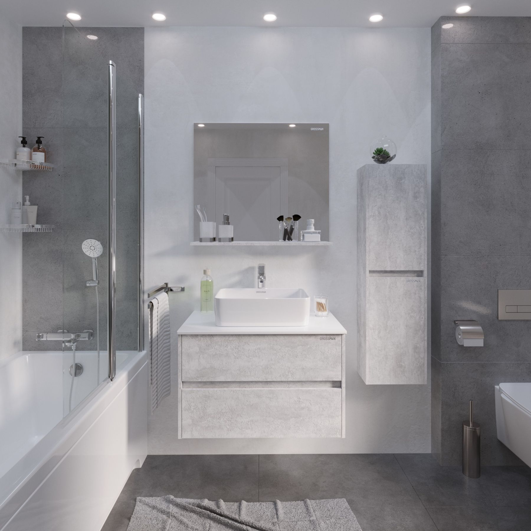 Подвесной пенал Эдванс 35 см - отражает современные тенденции в дизайне мебели для ванных комнат: и создан для тех, кто ценит современный лаконичный дизайн, холодный эффект светлого цемента.