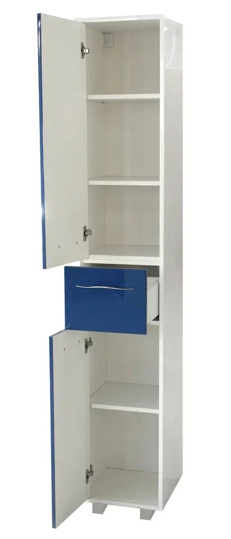 Коллекция Barcelona выполнена в стиле модерн. Плавные линии и формы подчеркивают элегантность комплекта, а разнообразие комплектации позволяет использовать мебель в качестве маркера вашего собственного стиля. Напольный пенал состоит из трех частей с распашными дверцами и ящиком. В верхней и нижней части пенала расположены полки, которые можно регулировать по высоте по мере необходимости, ящик предназначен для мелких предметов.Пенал белого цвета по умолчанию. Возможна покраска по палитре RAL.