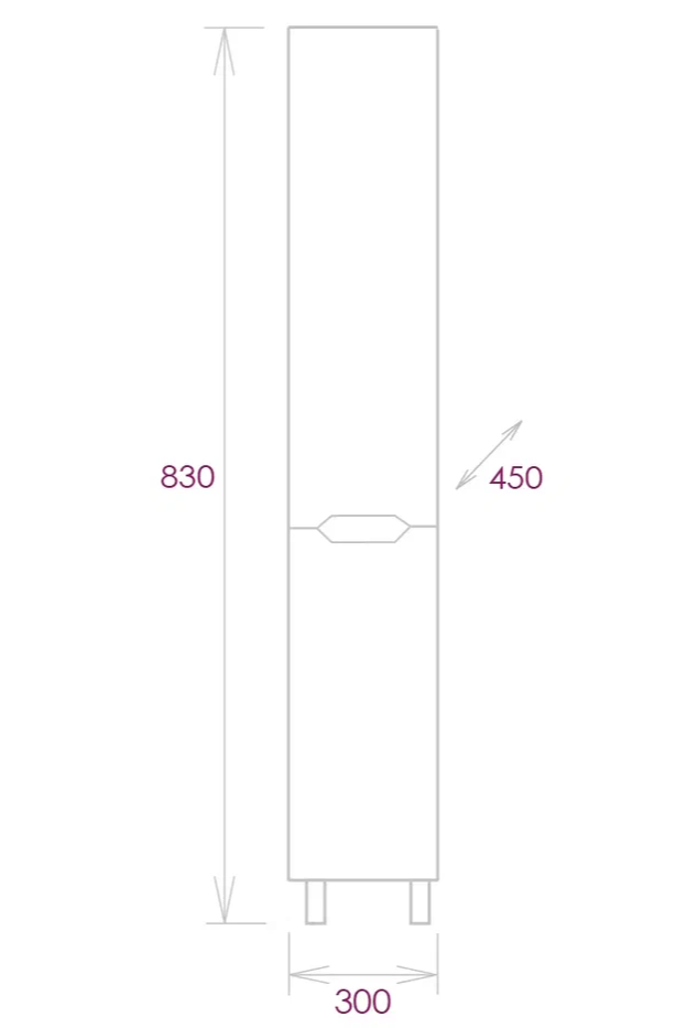 Размеры пенала с ножками 30x27x190 см.