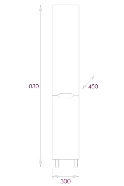 Пенал имеет два отделения за распашными дверцами с доводчиками, полки внутри регулируются по высоте. Ручки, изящно интегрированные в фасады, позволяют сделать эксплуатацию мебели более удобной и практичной.