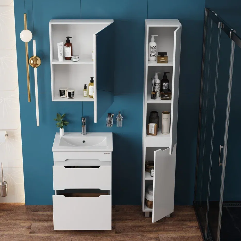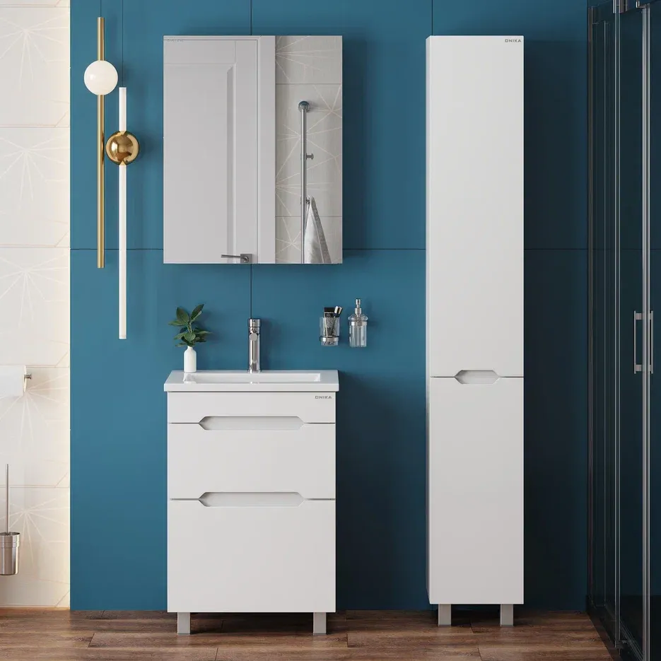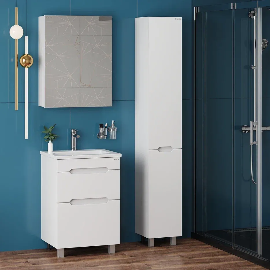Напольный пенал для ванной комнаты Onika Айленд 30 сочетает в себе стильный минималистичный дизайн, белую глянцевую поверхность и высочайшее качество исполнения.