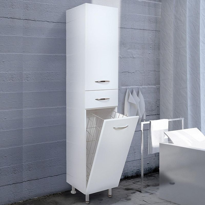 Напольный пенал для ванной комнаты с корзиной для белья Onika МОДЕРН 32, благодаря простому минималистичному дизайну, белому глянцевому фасаду, подойдет под любой интерьер ванной комнаты.