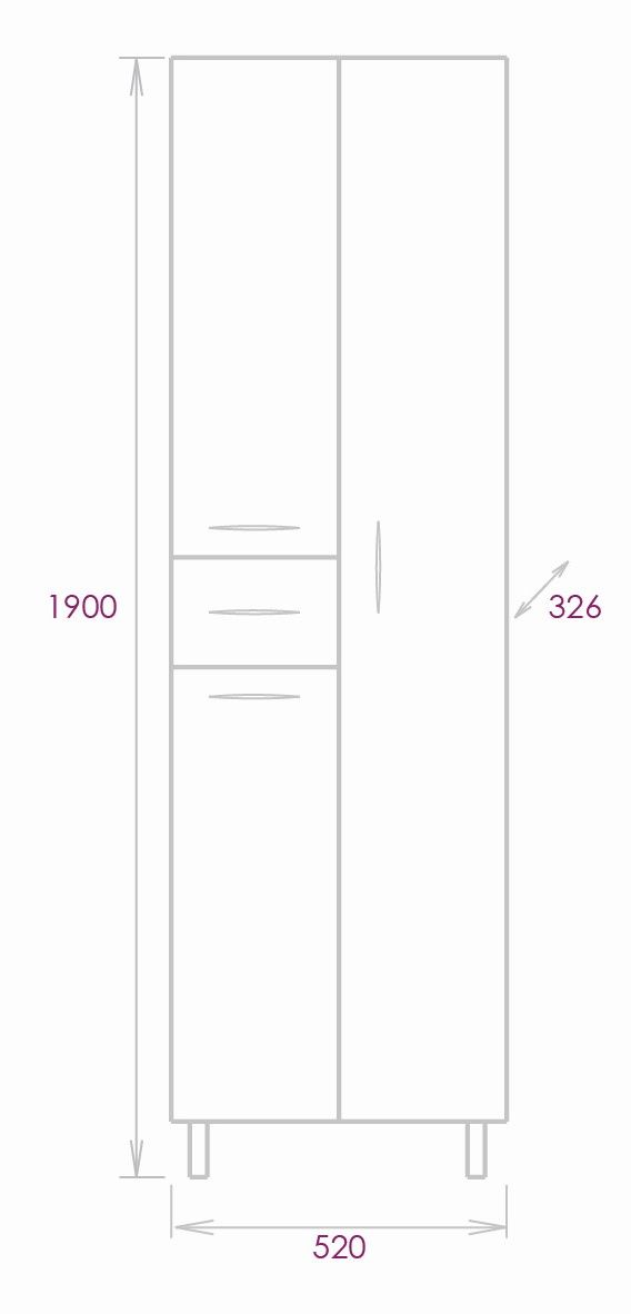 Пенал имеет универсальную ориентацию: при установке верх и низ пенала можно менять местами, а дверцы могут открываться как влево, так и вправо.