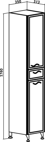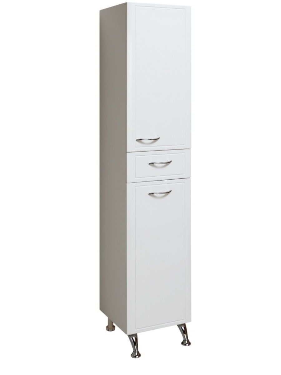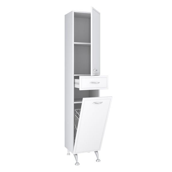 Шкаф-колонна напольный с двумя распашными дверками и выдвижным ящиком посередине. В верхнем отделении - одна внутренняя полка, нижнее отделение комплектуется полкой и корзиной для белья. Петли со встроенным доводчиком, ящик - на шариковых направляющих полного выдвижения, ручки - 3шт, ножки хром - 2шт, ножки пластик - 2шт. Выпускается только в правом исполнении.