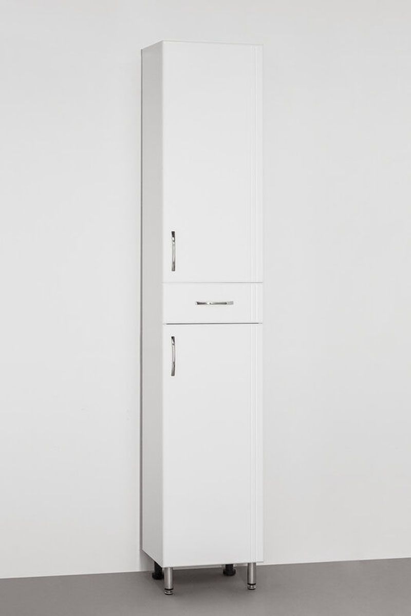 Колонна напольная бренда "Style Line" Эко Стандарт 36. Фурнитура - хром, эксклюзивный декор "Луино" - ламинация внутренней стороны изделия. Направляющие полного выдвижения Hettich; сборка изделия с помощью эксцентриковых стяжек Hafele; все материалы полностью влагостойкие