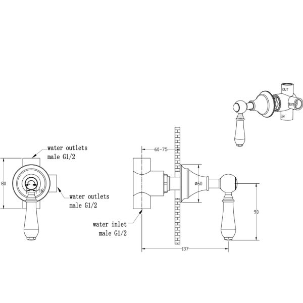 Переключатель потоков Boheme Imperiale золото 623