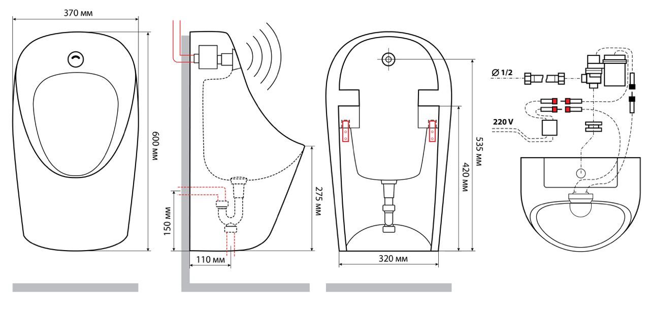 Писсуар подвесной Laguraty Sensor 310 белый купить