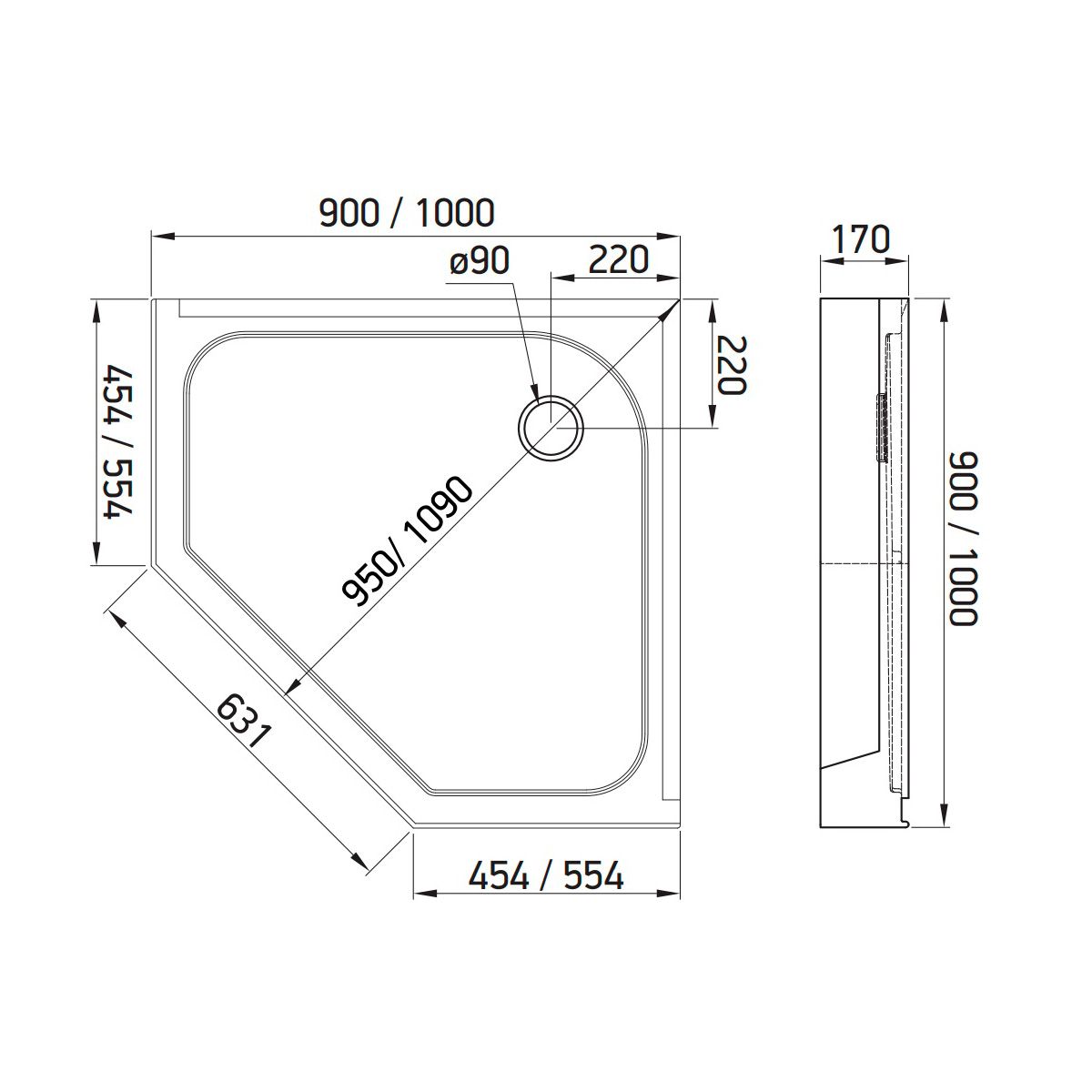 Стандартные размеры, см:90x90