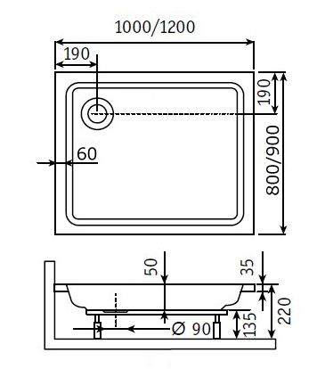 Акриловый поддон для душа RGW STYLE PR 800х1200х220 Подробнее