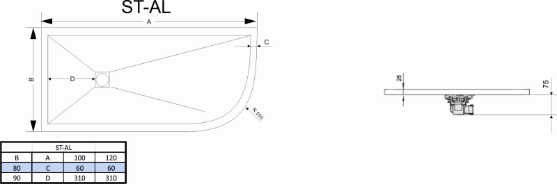 Поддон ассиметричныйиз искусственного камня RGW ST/AL-0128W 800х1200х25 Подробнее