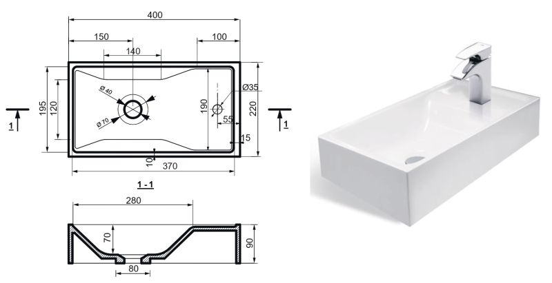 • Отверстия под смеситель: