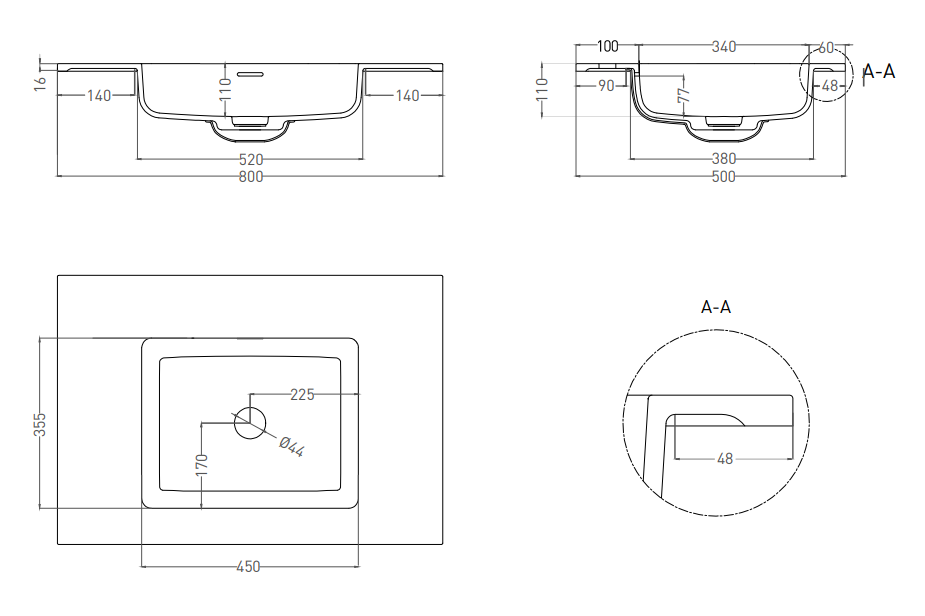 • Раковина БЕЗ отверстия под смеситель