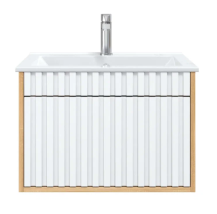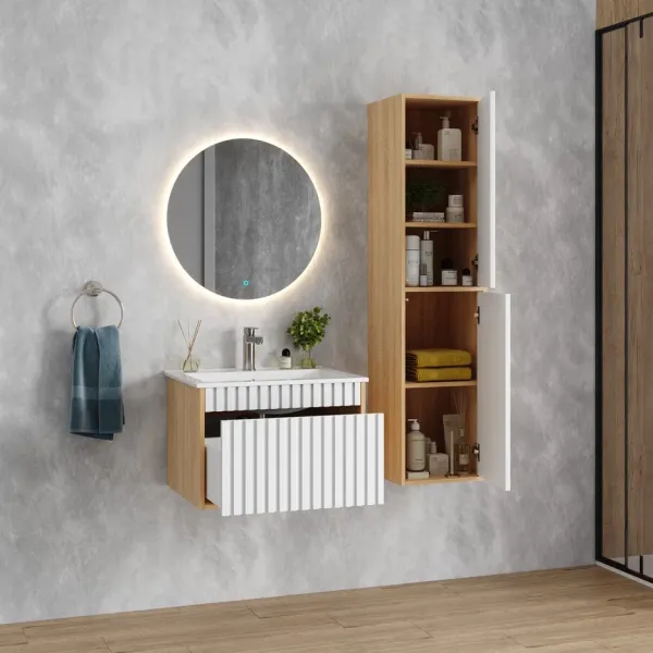 Рифленый белый матовый фасад с покрытием SoftTouch и корпус цвета дуба с роскошной текстурой подчеркнет изысканный вкус владельца и станет центральным элементом декора.