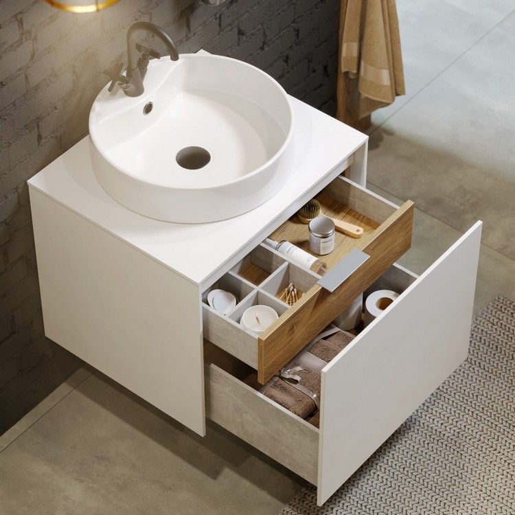 Подвесная тумба под раковину Aqwella Mobi MOB0106BS+MOB0706DB 60 смПодвесная тумба 60 см с двумя ящиками: основной и внутренний, скрытый за фасадом. Цвет бетон светлый/дуб балтийский; с умывальником