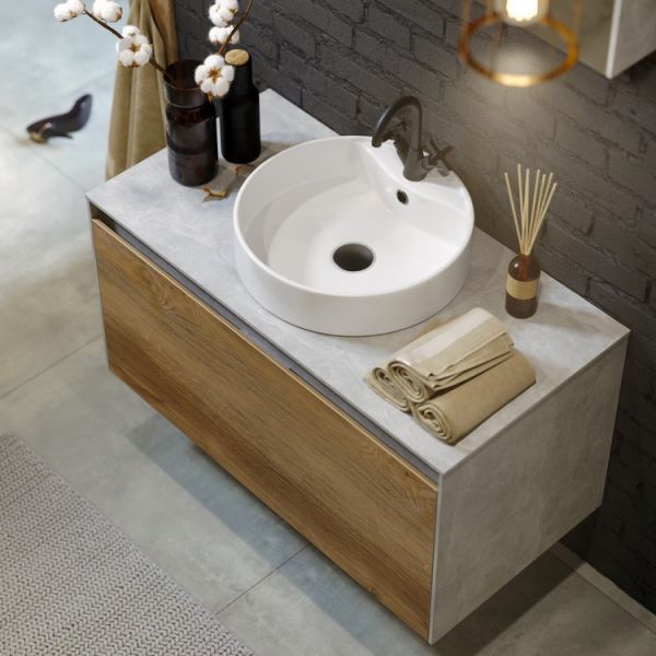 Подвесная тумба под раковину Aqwella Mobi MOB0110BS+MOB0710W 100 смПодвесная тумба 100 см с двумя ящиками: основной и внутренний, скрытый за фасадом. Цвет бетон светлый/белый; с умывальником