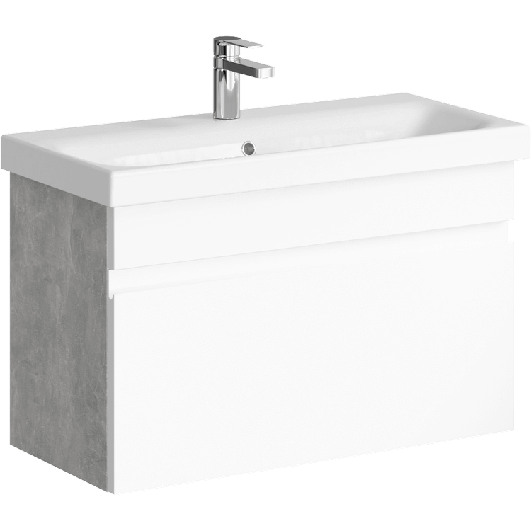 Подвесная тумба под раковину Aqwella Smart SRT0108BS 80 смПодвесная тумба с одним ящиком, цвет бетон светлый с умывальником