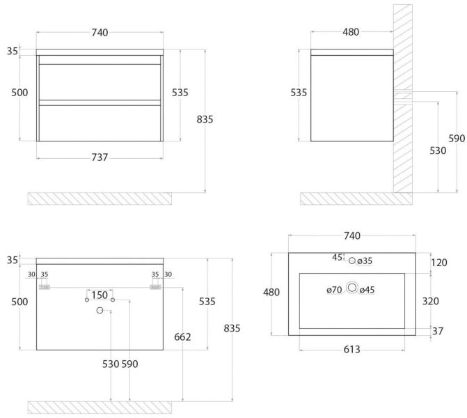 • Рекомендуемая высота от пола: 830 мм