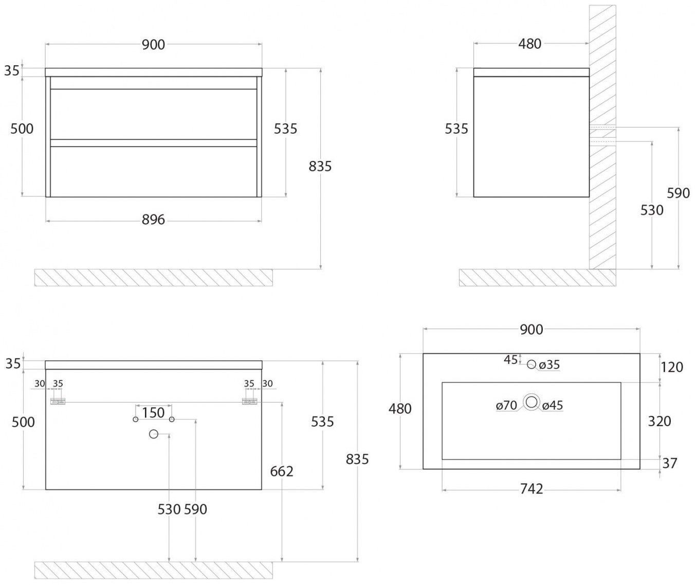Тумба под раковину Art&Max выполнена в современном стиле и прекрасно впишется в интерьер любой ванной комнаты. Благодаря подвесной конструкции изделие не занимает много места, позволяет экономить пространство и облегчает уборку. Модель оснащена двумя выдвижными ящиками с доводчиками. Фасад изделия выполнен из ЛДСП.Тумба может использоваться вместе с раковиной AM-LAV-900-MR-A.Раковина и смеситель в комплект поставки не входят и приобретаются отдельно.Особенности: