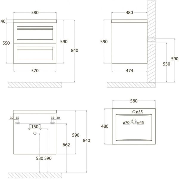 Тумба под раковину Art&Max выполнена в современном стиле и прекрасно впишется в интерьер любой ванной комнаты. Благодаря подвесной конструкции изделие не занимает много места, позволяет экономить пространство и облегчает уборку. Модель оснащена двумя выдвижными ящиками с доводчиками. Фасад изделия выполнен из МДФ.Тумба может использоваться вместе с раковиной AM-LAV-580-MR-A.Раковина и смеситель в комплект поставки не входят и приобретаются отдельно.Особенности: