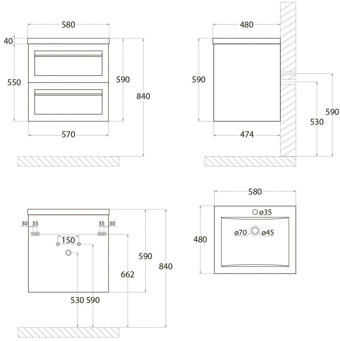 Тумба под раковину Art&Max выполнена в современном стиле и прекрасно впишется в интерьер любой ванной комнаты. Благодаря подвесной конструкции изделие не занимает много места, позволяет экономить пространство и облегчает уборку. Модель оснащена двумя выдвижными ящиками с доводчиками. Фасад изделия выполнен из МДФ.Тумба может использоваться вместе с раковиной AM-LAV-580-MR-A.Раковина и смеситель в комплект поставки не входят и приобретаются отдельно.Особенности: