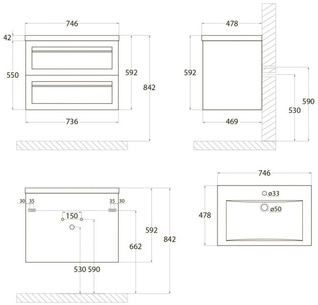 • Рекомендуемая высота от пола: 842 мм