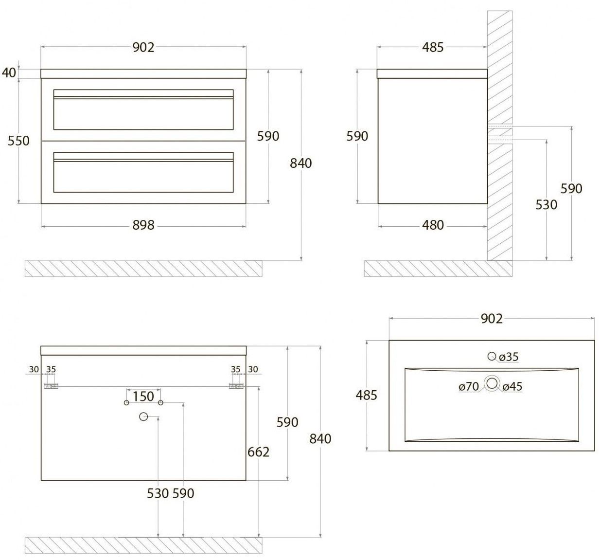 Тумба под раковину Art&Max выполнена в современном стиле и прекрасно впишется в интерьер любой ванной комнаты. Благодаря подвесной конструкции изделие не занимает много места, позволяет экономить пространство и облегчает уборку. Модель оснащена двумя выдвижными ящиками с доводчиками. Фасад изделия выполнен из МДФ.Тумба может использоваться вместе с раковиной AM-LAV-900-MR-A.Раковина и смеситель в комплект поставки не входят и приобретаются отдельно.Особенности: