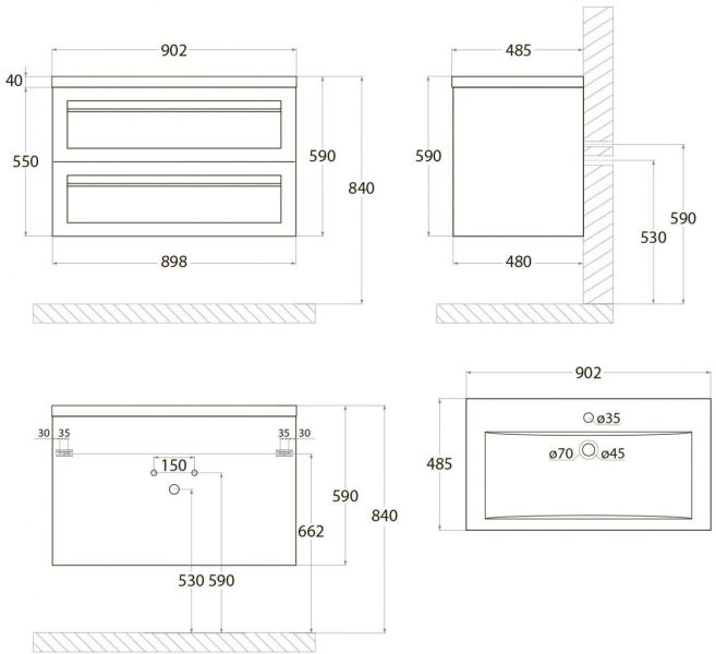 - Рекомендуемая высота от пола: 840 мм