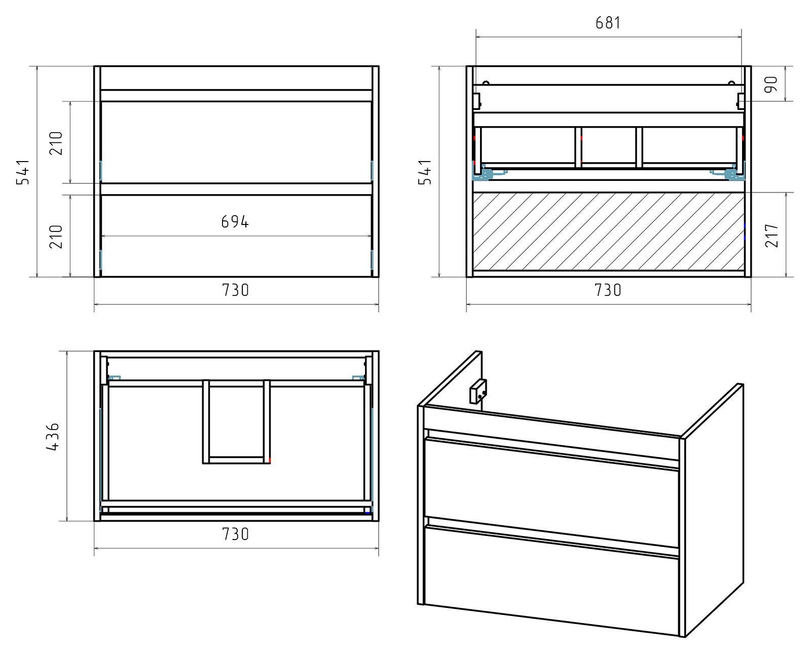 Подвесная тумба под раковину Brevita Balaton BAL-06075-01-01П2Я 75см белый