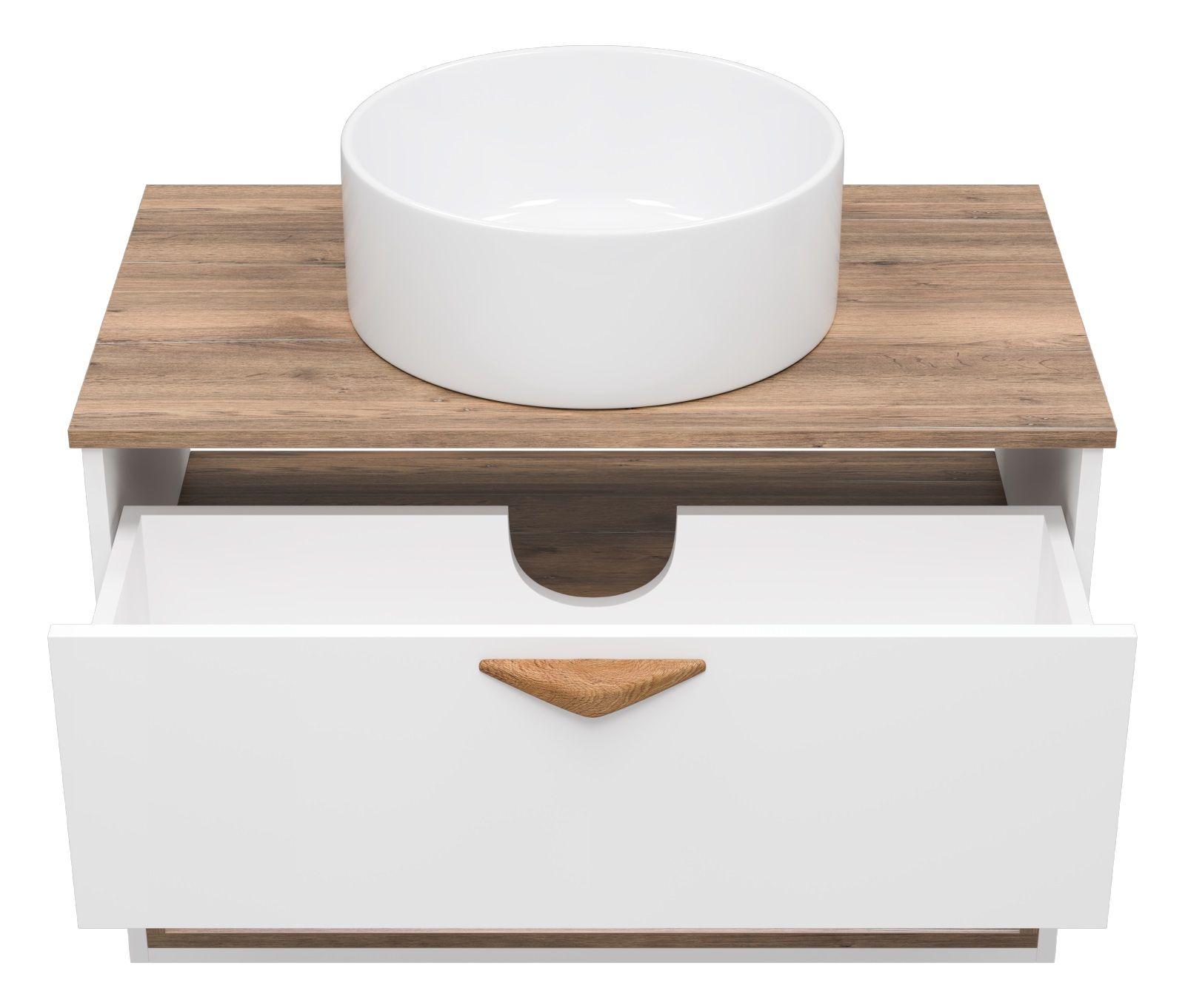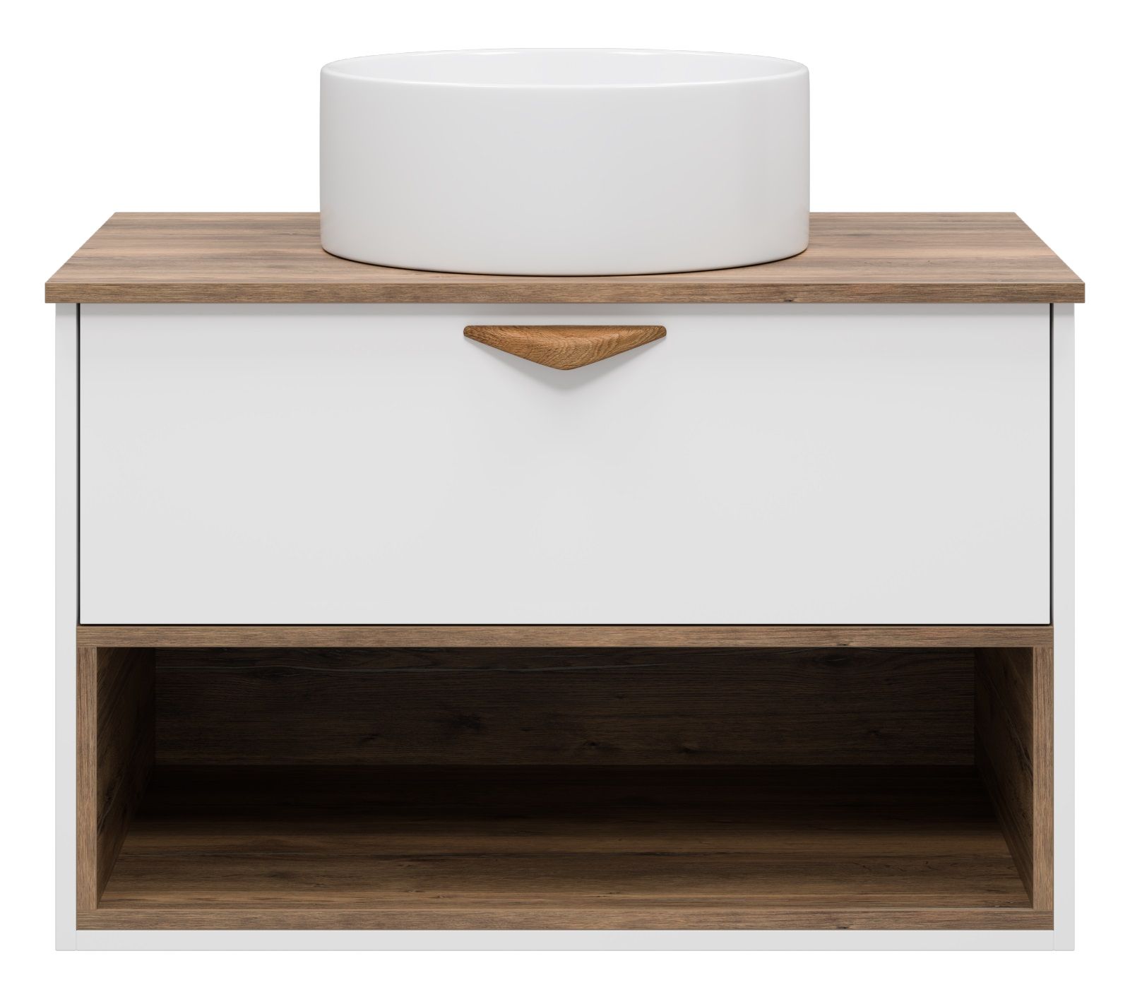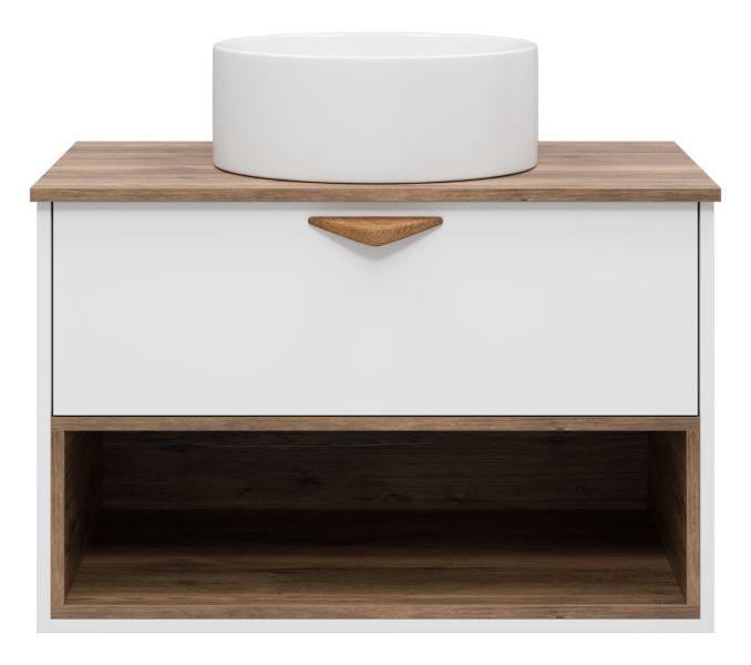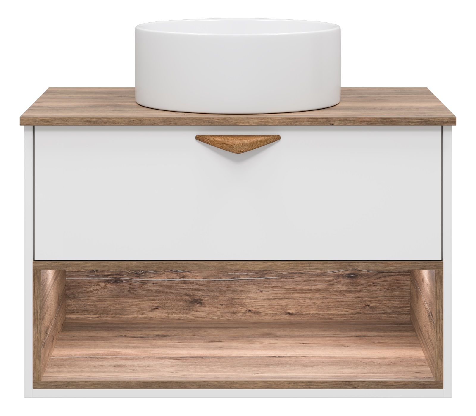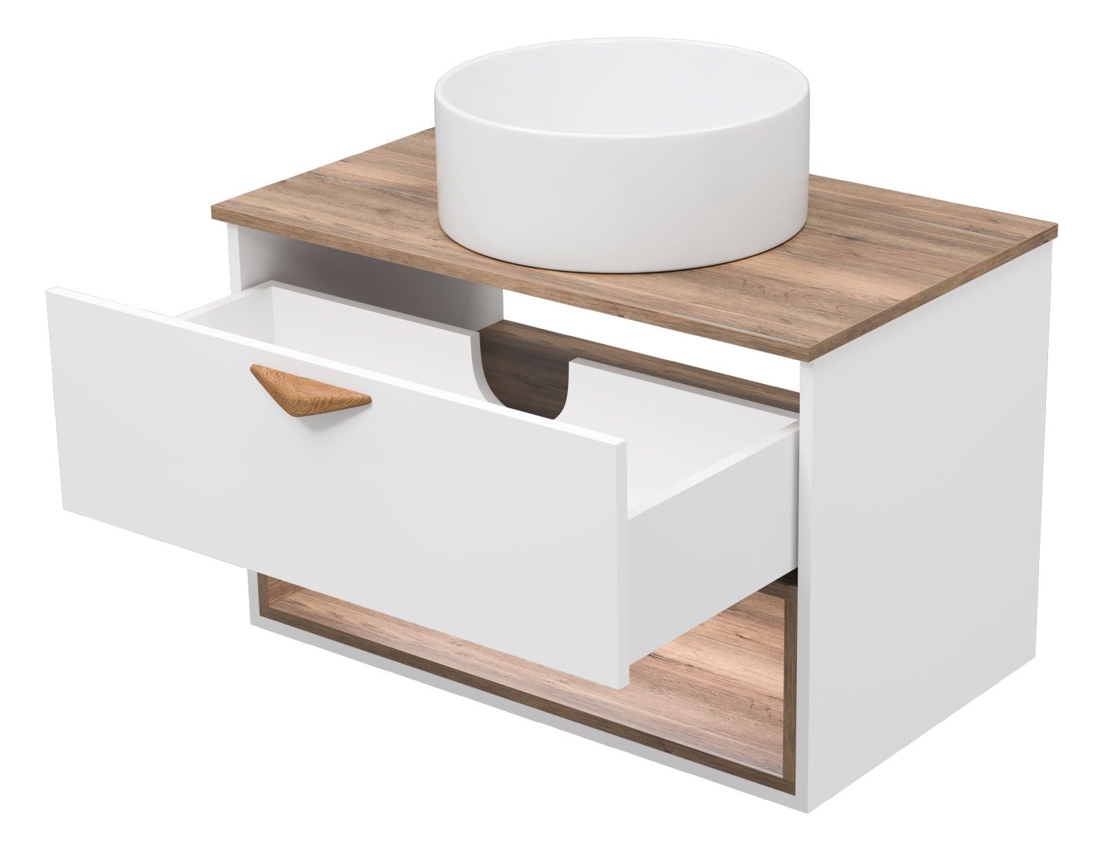 Подвесная тумба под раковину Brevita Bergen BER-07080-19-01-1Я с подсветкой 80см дуб Галифакс олово/белый