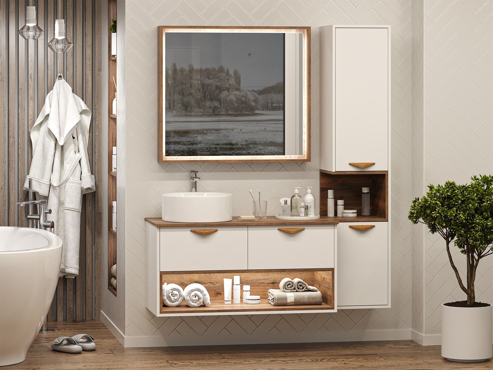 Подвесная тумба под раковину Brevita Bergen BER-07105-19-01-2Я с подсветкой 105см дуб Галифакс олово/белый купить