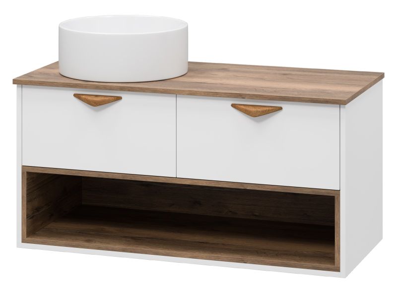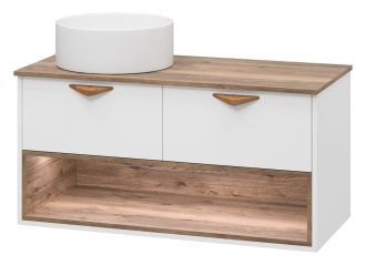 Подвесная тумба под раковину Brevita Bergen BER-07105-19-01-2Я с подсветкой 105см дуб Галифакс олово/белый