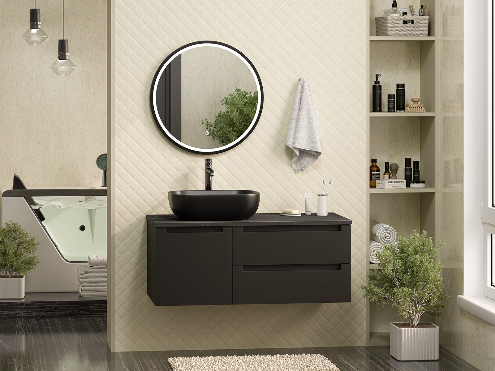 Подвесная тумба в ванную комнату – это не просто элемент мебели, а подлинный акцент в интерьере, который сочетает в себе функциональность и стиль. Она придаёт помещению лёгкость и воздушность, освобождая пространство на полу и создавая иллюзию большего объёма.Функциональные особенности таких тумб варьируются от наличия выдвижных ящиков до встроенных систем хранения, которые помогают организовать пространство ванной комнаты. Важным аспектом является также возможность выбора различных цветовых решений и отделок, что позволяет гармонично вписать тумбу в любой интерьер – от классического до ультрасовременного.С помощью подвесной тумбы ванная комната становится не только более удобной, но и эстетически привлекательной, создавая атмосферу уюта и роскоши.