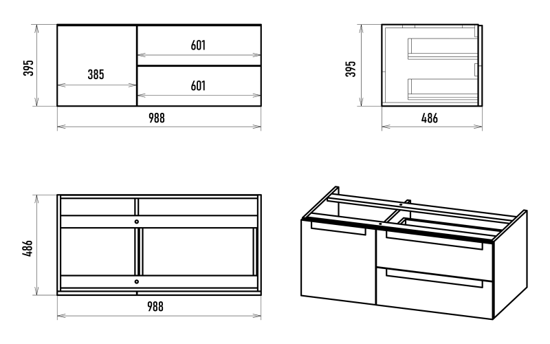 Подвесная тумба под раковину Brevita Cargo CAR-01100-021П2Я 100см чёрный