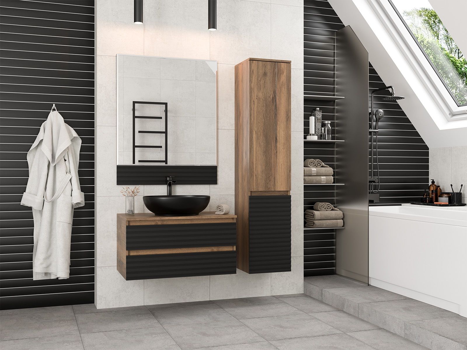 Подвесная тумба под раковину Brevita Dakota DAK-09080-19/02-2Я 80см дуб Галифакс олово/чёрный
