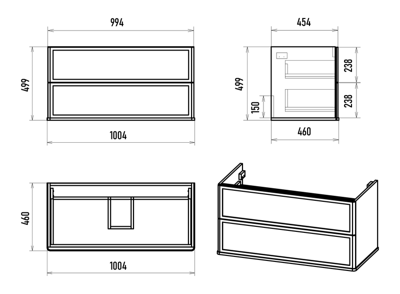 Размер мебели, мм (ш/г/в): 1004x460x500