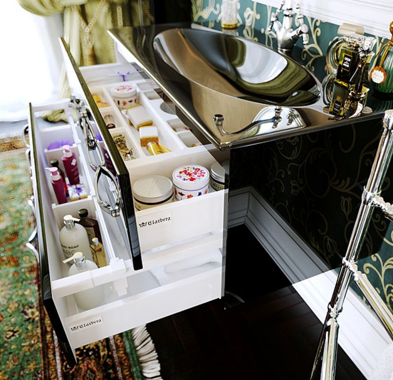 Тумба оснащена механизмами плавного и бесшумного закрытия, направляющими скрытого монтажа.
