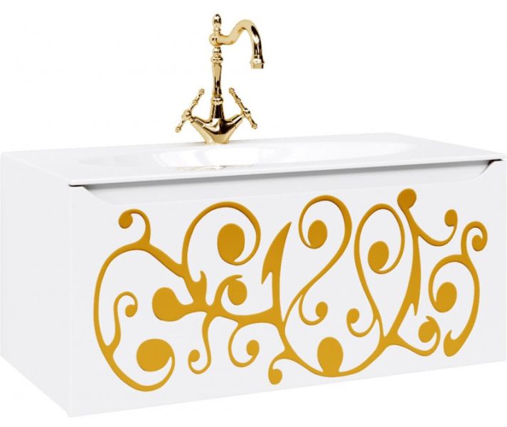 Подвесная тумба под раковину Clarberg Elegance 100 EL0110GL, с двойным выдвижным ящиком, с ручкой-выемкой. Эргономичность и гармония. Изысканный и нежный тисненый узор создает романтическое настроение.Технические данные:Цвет: белый матовый с золотым узором.