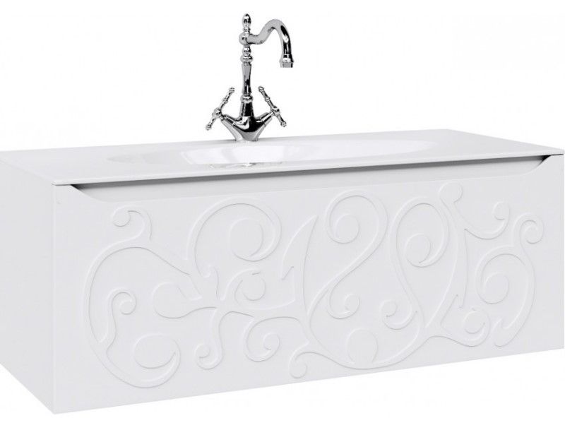 Подвесная тумба под раковину Clarberg Elegance 120 EL0112, с двойным выдвижным ящиком, с ручкой-выемкой. Эргономичность и гармония. Изысканный и нежный тисненый узор создает романтическое настроение.Технические данные:Цвет: белый матовый.