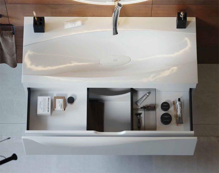 Подвесная тумба под раковину Clarberg Papyrus 100 PAP0110 с одним основным ящиком и одним потайным ящиком, скрытым за фасадом. Надежные направляющие обеспечивают мягкое и плавное закрывание. Внутри ящики оснащены антискользящими ковриками белого цвета. Удобная изящная ручка имитирует лист бумаги и является одним целым с фасадом.Технические данные:Цвет: белый.