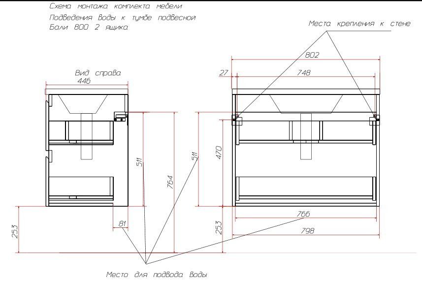 Подвесная тумба под раковину Эстет Bali ФР-00002080 80см два ящика белый