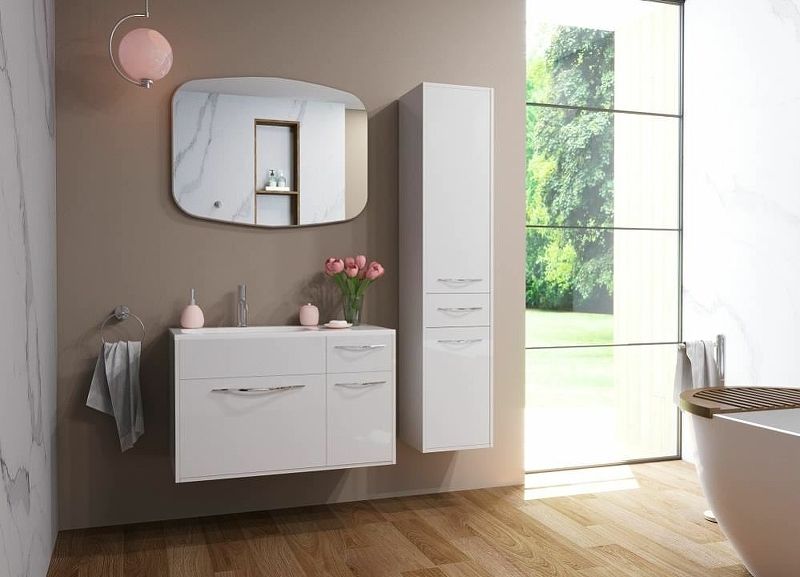 Коллекция Barcelona выполнена в стиле модерн. Плавные линии и формы подчеркивают элегантность комплекта, а разнообразие комплектации позволяет использовать мебель в качестве маркера вашего собственного стиля. За счет раковины с крылом коллекция Barcelona более вместительная и удобная. В подвесной тумбе 2 ящика: большой со скрытым хранением (дополнительный выдвижной ящик) и маленький предполагает хранение различных аксессуаров, а также секция с распашной дверцей где можно разместить бытовую химию.Тумба белого цвета по умолчанию. Возможна покраска по палитре RAL.