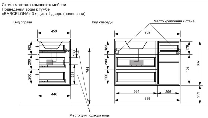 Подвесная тумба под раковину Эстет Barcelona ФР-00003578 П 90см два ящика одна дверь