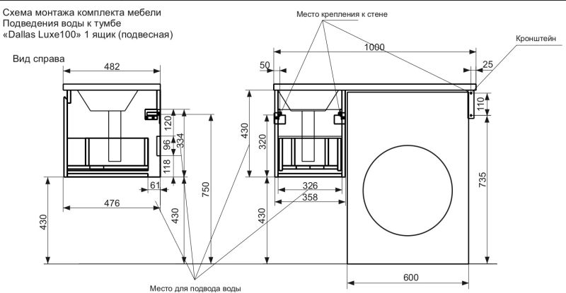 Коллекция мебели для ванной комнаты Dallas Luxe покоряет своей удивительной простой и функциональностью. Стиральная машина устанавливается под столешницей. Широкий и вместительный ящик предназначен для крупных предметов. Подвесная система монтажа позволяет более эффективно использовать пространство, не мешает уборке в ванной комнате.