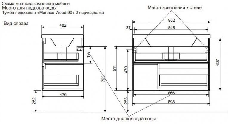 Подвесная тумба под раковину Эстет Monaco Wood ФР-00010672 90см два ящика белый/дуб рустикальный купить