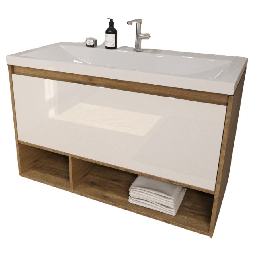 Подвесная тумба под раковину Эстет Monaco Wood ФР-00011317 100см один ящик белый/дуб рустикальный купить