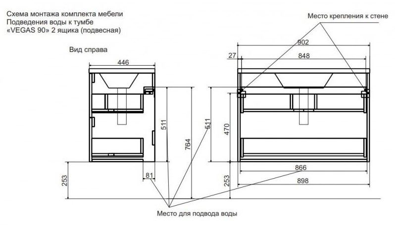 Подвесная тумба под раковину Эстет Vegas ФР-00003487 90см два ящика белый